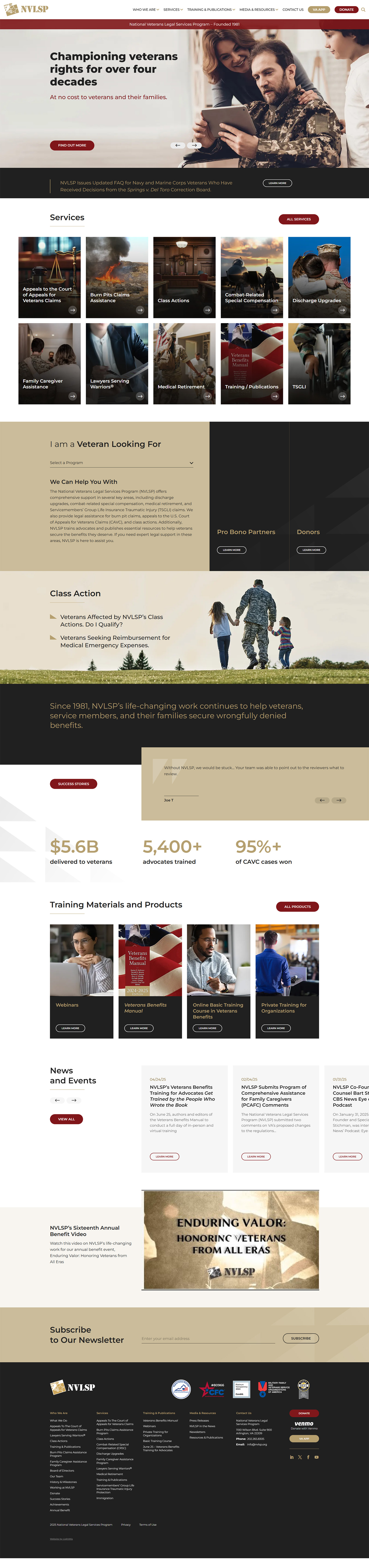 The new website offers comprehensive information, accessible resources for veterans, and streamlined online donation capabilities. In the upcoming second phase, we will consolidate NVLSP’s satellite e-commerce sites into a unified platform, rebuilt on WooCommerce and fully integrated with the main site.